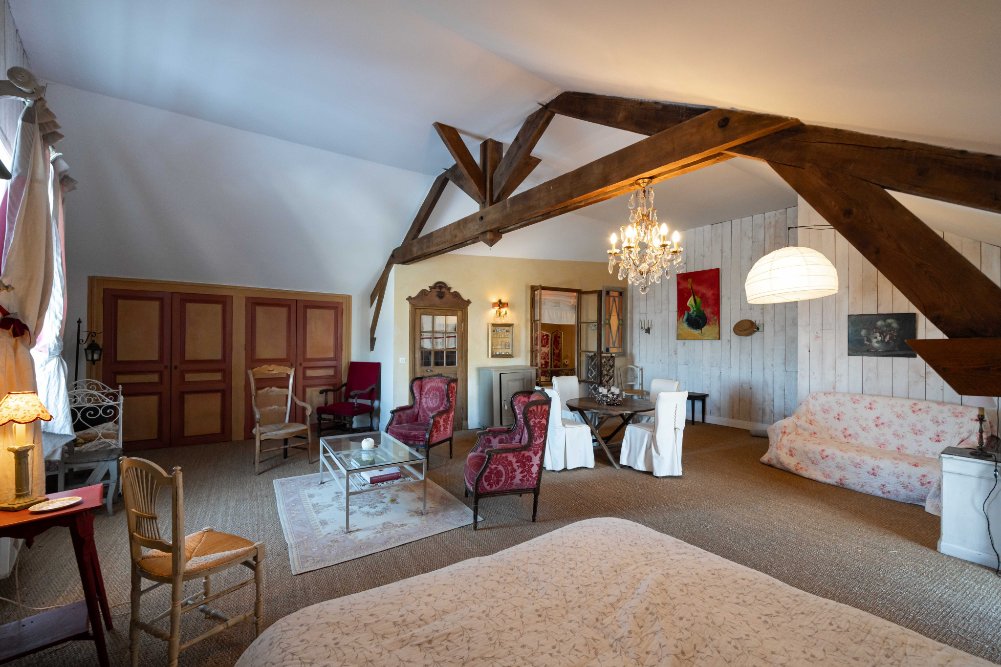 Perchée à quelques lieux de la commune de Courville, célèbre pour sa fameuse pierre de taille, cette Longère d'époque 1930 revisitée, s'offre à nous comme un véritable havre de paix. Sa cour pavée centrale, sa marquise et le lierre escaladant les murs épais lui donnent des allures de maison de vacances où il fait bon vivre. À moins de trente minutes de Reims et une de Paris, cette propriété et ses dépendances ouvrent avec elles le champ des possibles. Qu'il s'agisse d'une maison principale pouvant accueillir famille et amis, d'une résidence secondaire où se ressourcer le week-end ou encore d'une maison d'hôtes, les possibilités sont infinies. Les différentes bâtisses datant de la reconstruction d'après-guerre, ont su conserver de nombreux éléments du charme d'antan, tels que les sols en tomettes ou carreaux de ciment, les poutres apparentes, et les imposants manteaux de cheminées en pierre ou bois, présents dans de nombreuses pièces de la maison. Les peintures trompe l'oeil et les pièces de mobilier chinées par les propriétaires confèrent aux lieux un véritable cachet. À cet ensemble immobilier vient s'ajouter un parc arboré de près de 4000m2 et d'autres dépendances où de nouveaux projets peuvent encore voir le jour.
