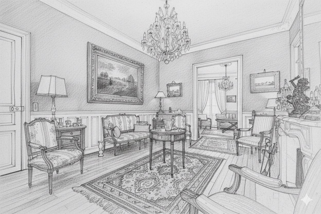 Nous vous ouvrons, discrètement l’accès à cette maison bourgeoise au charme d’antan, offrant de vastes espaces de réception avec salons en enfilade, véranda et salon de musique insonorisé.
