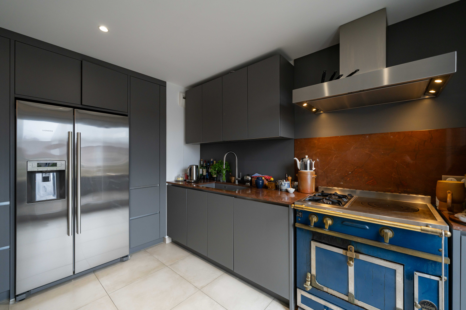 La pièce de vie de plus de 45 m² séduit immédiatement par sa double hauteur sous plafond de plus de 5 mètres, créant une atmosphère aérienne et baignée de lumière grâce aux larges baies vitrées ouvrant sur l’extérieur. La cuisine, aménagée et équipée allie fonctionnalité et finitions de qualité.