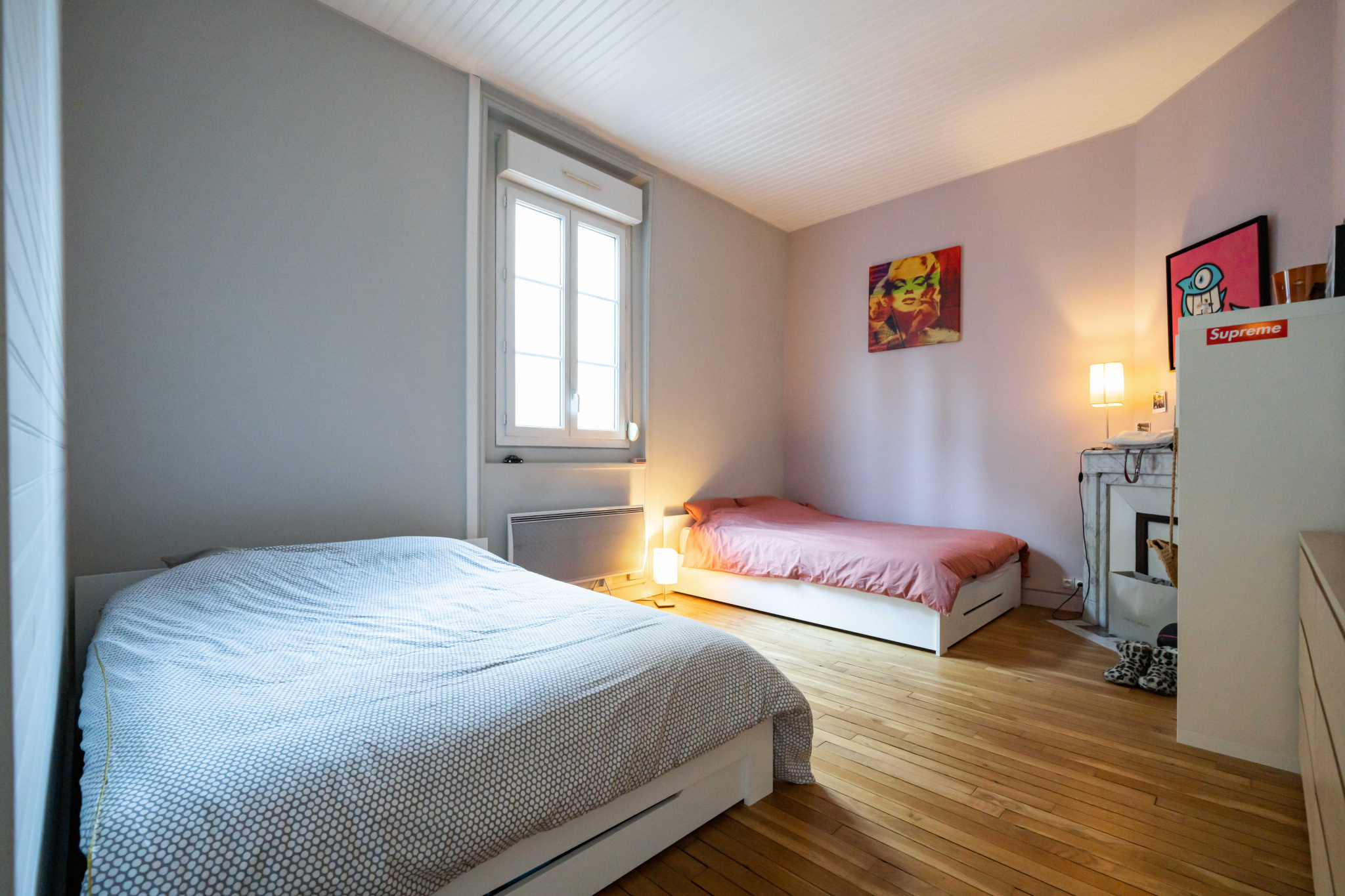 agrémenté d'une cheminée à gaz et de grandes doubles fenêtres vue Cathédrale