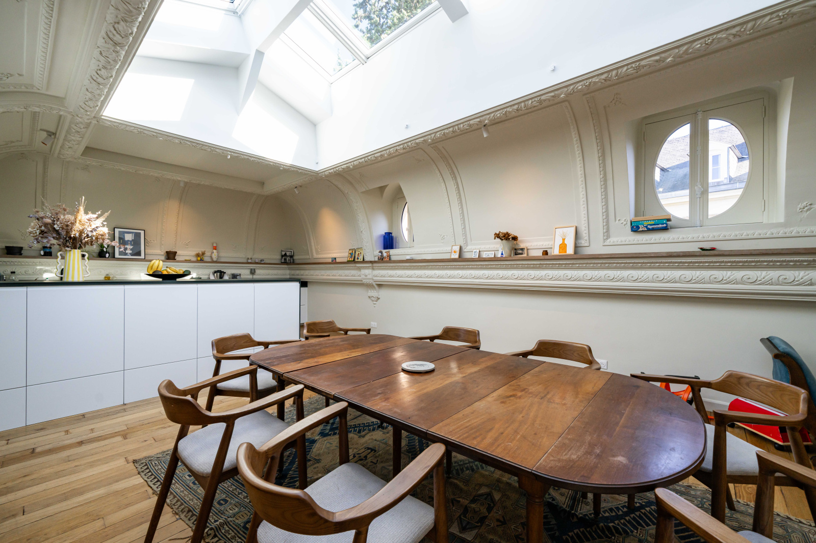 Cet appartement en duplex inversé, développant environ 138 m² au sens de la loi Carrez, séduit par son organisation atypique et ses volumes remarquables.
