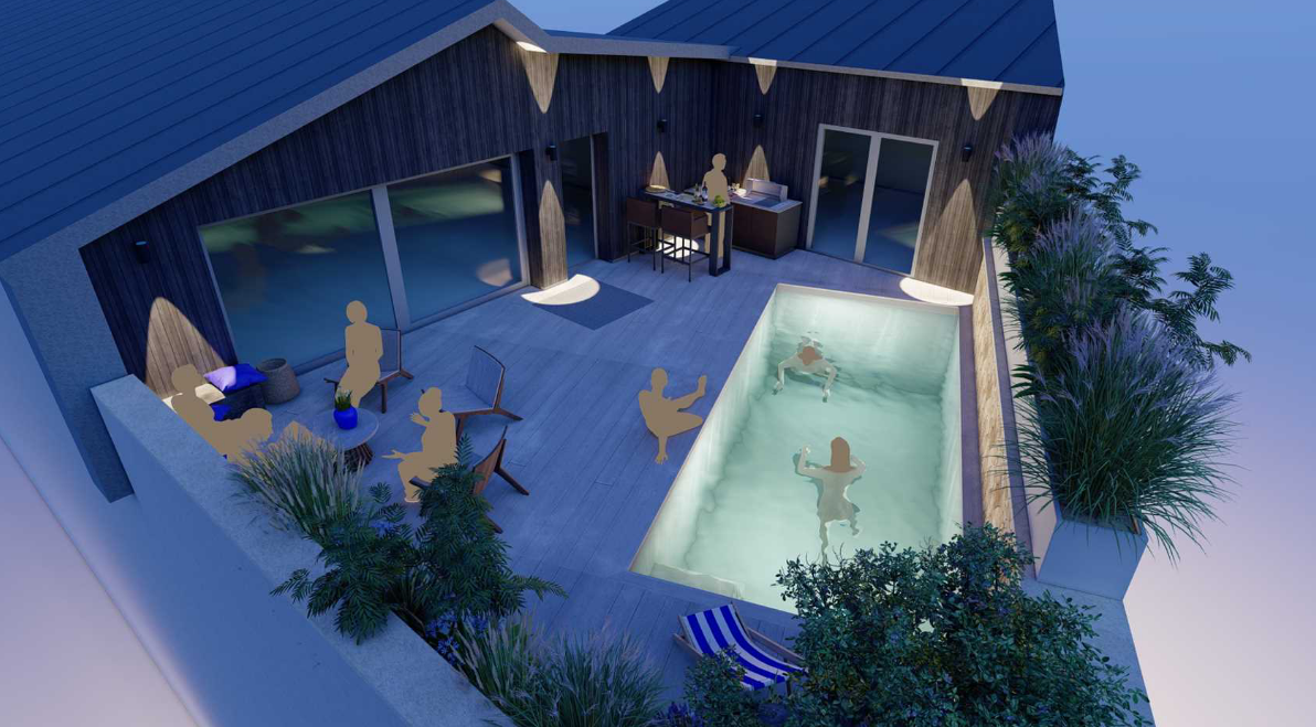 Supposons qu'un ascenseur privatif vous mène au second étage, un palier vous mènera à un plateau de 225 m² avec une terrasse de 50 m² et une piscine plein sud.