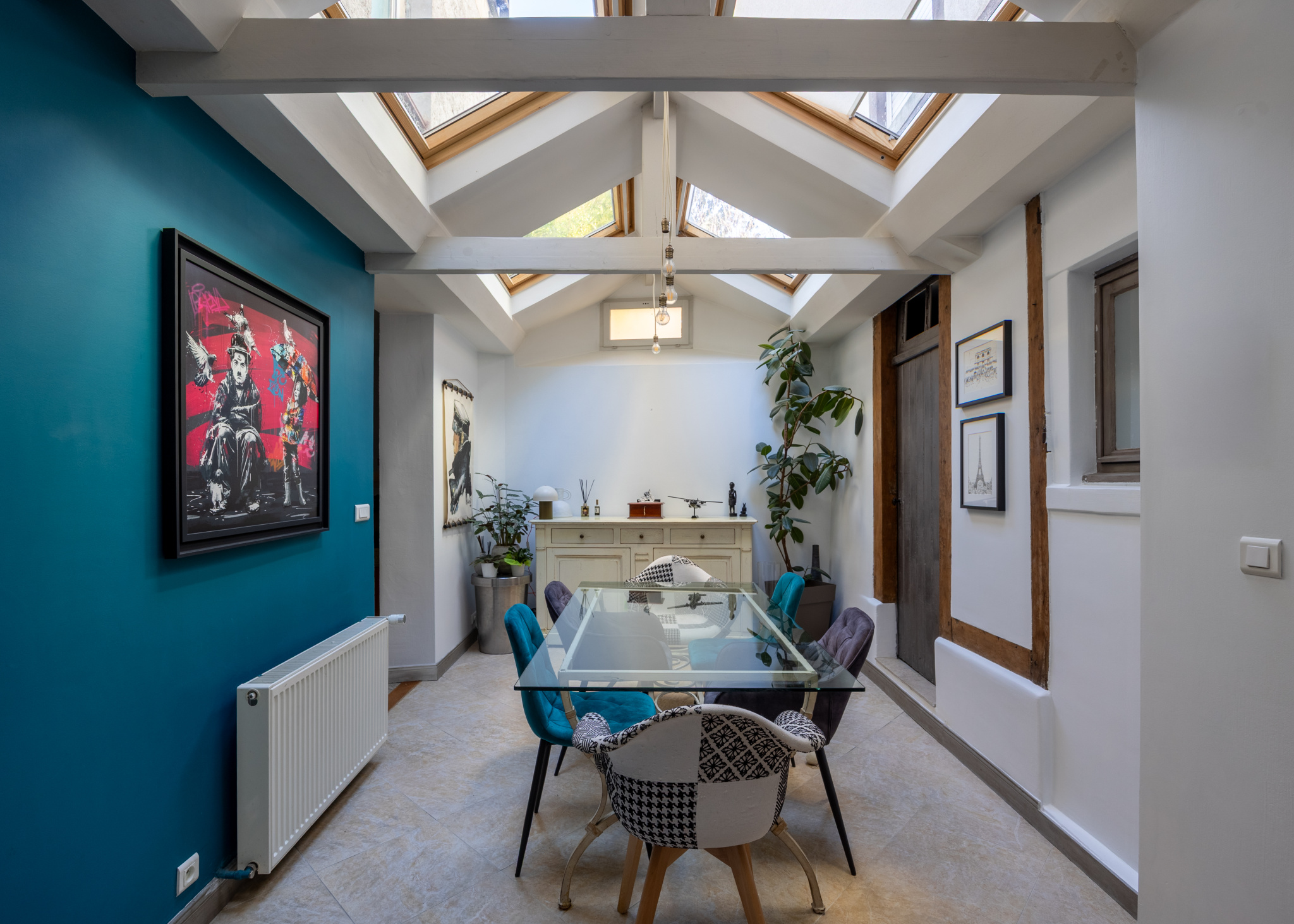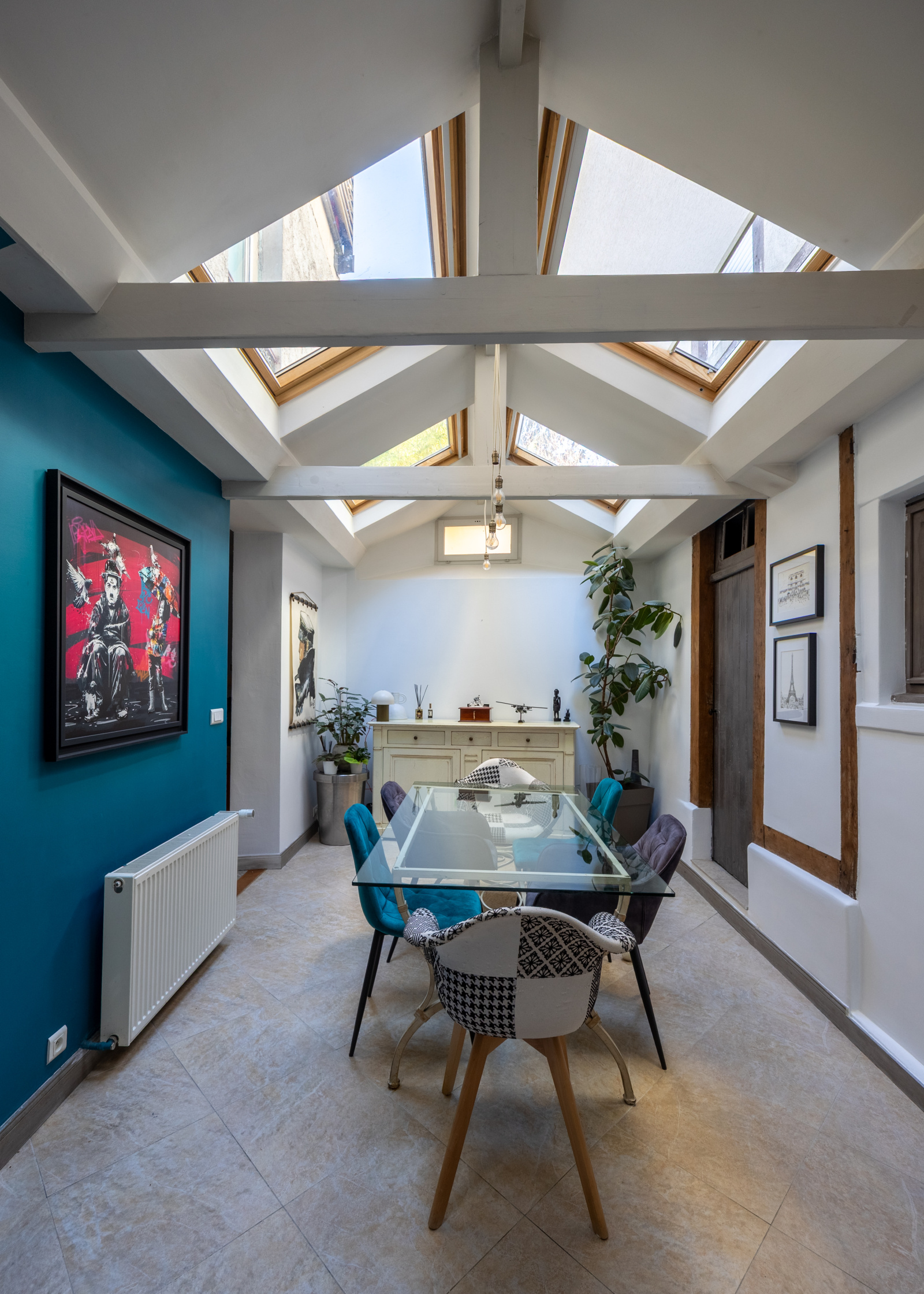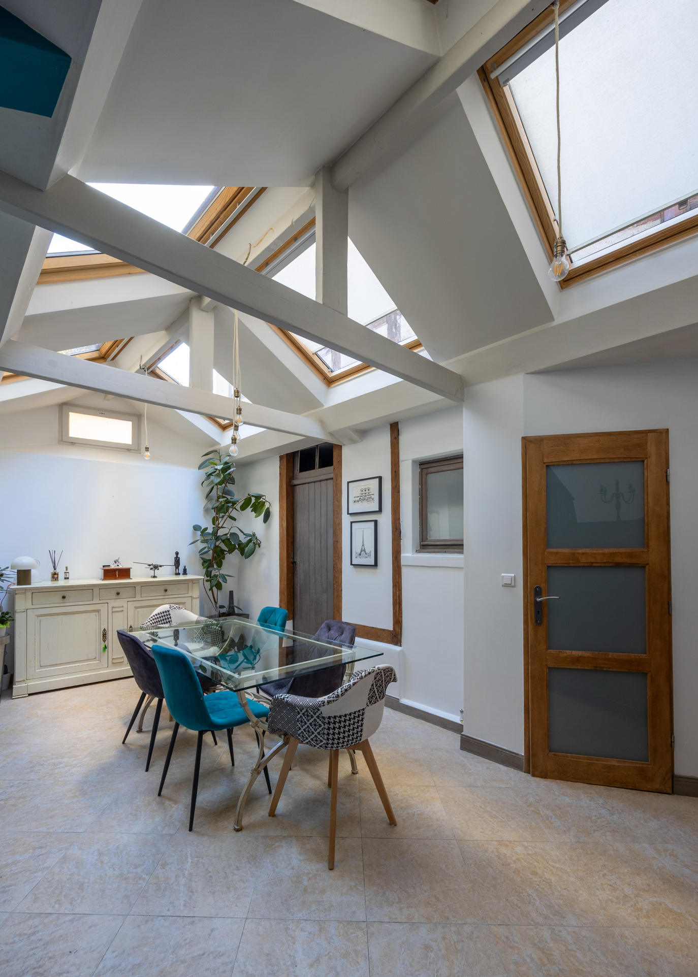 Derrière une façade discrète, les volumes se dévoilent progressivement, révélant une atmosphère intimiste et chaleureuse.
