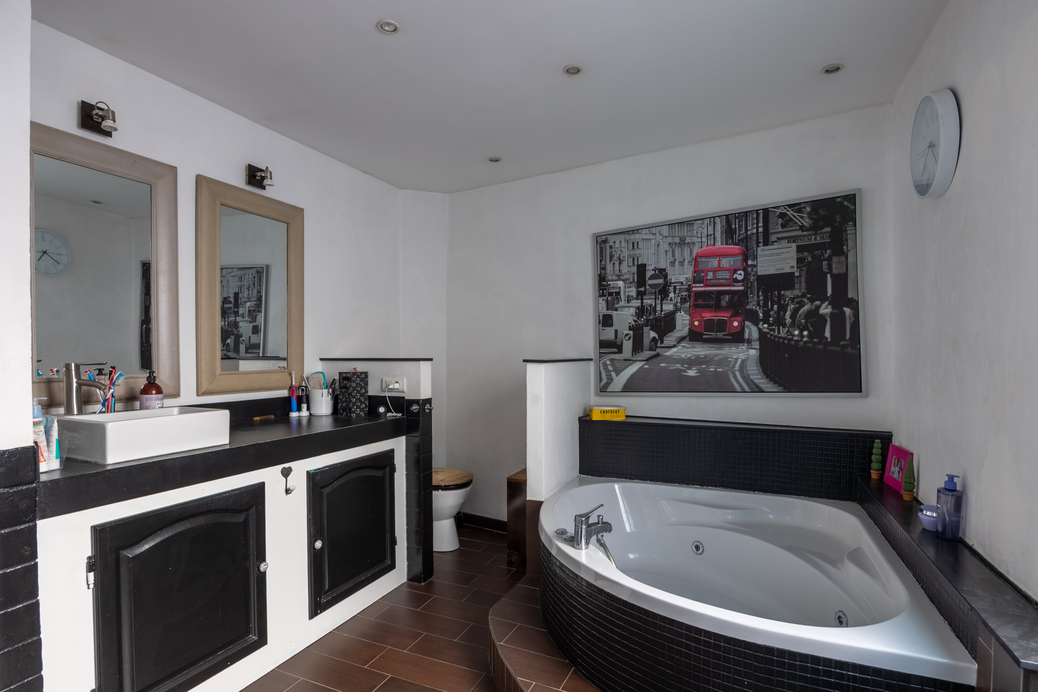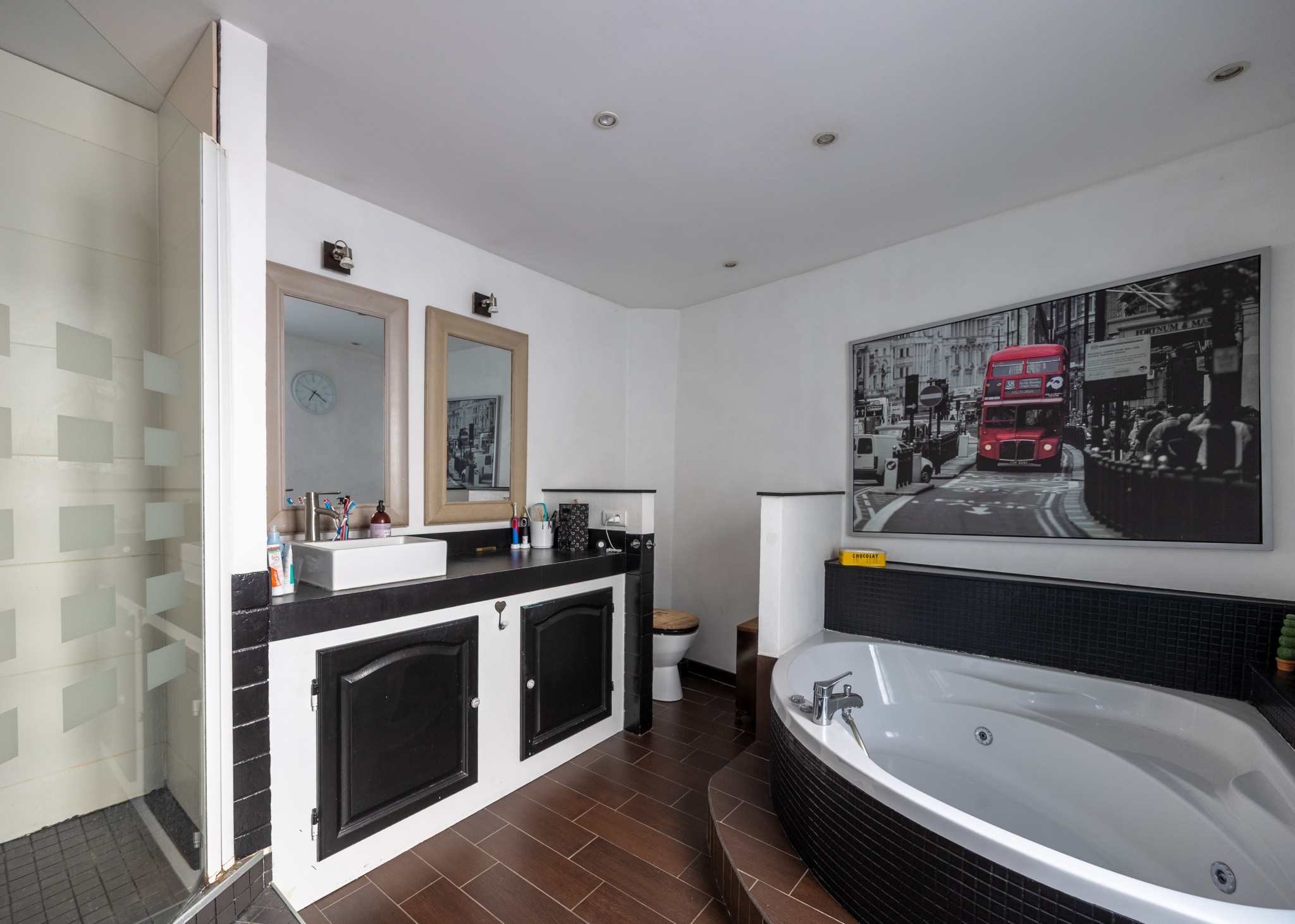 Le rez-de-chaussée accueille un espace de réception agréable, composé d’un séjour ouvert sur la rue, prolongé par un patio central couvert, baigné de lumière naturelle, faisant office de salle à manger et véritable cœur de la maison. La cuisine s’intègre harmonieusement à cet ensemble, pouvant être ouverte ou fermée selon les usages. Des espaces annexes ( bureau, cellier, buanderie ) viennent compléter ce niveau, apportant fonctionnalité et confort au quotidien.