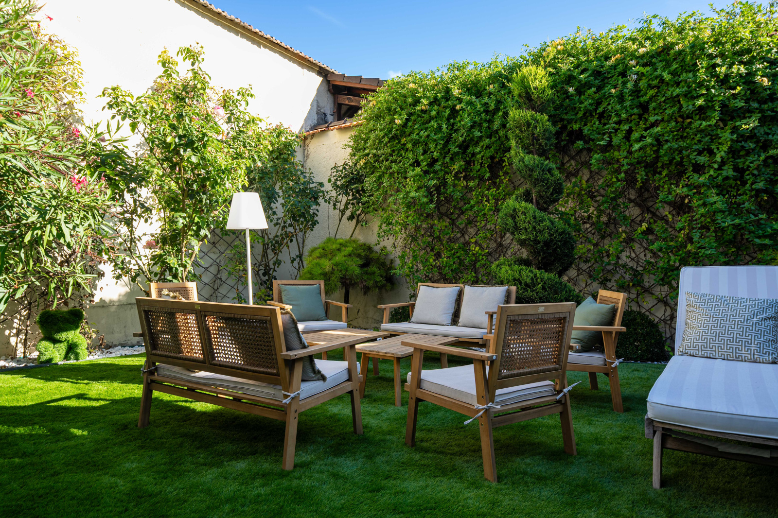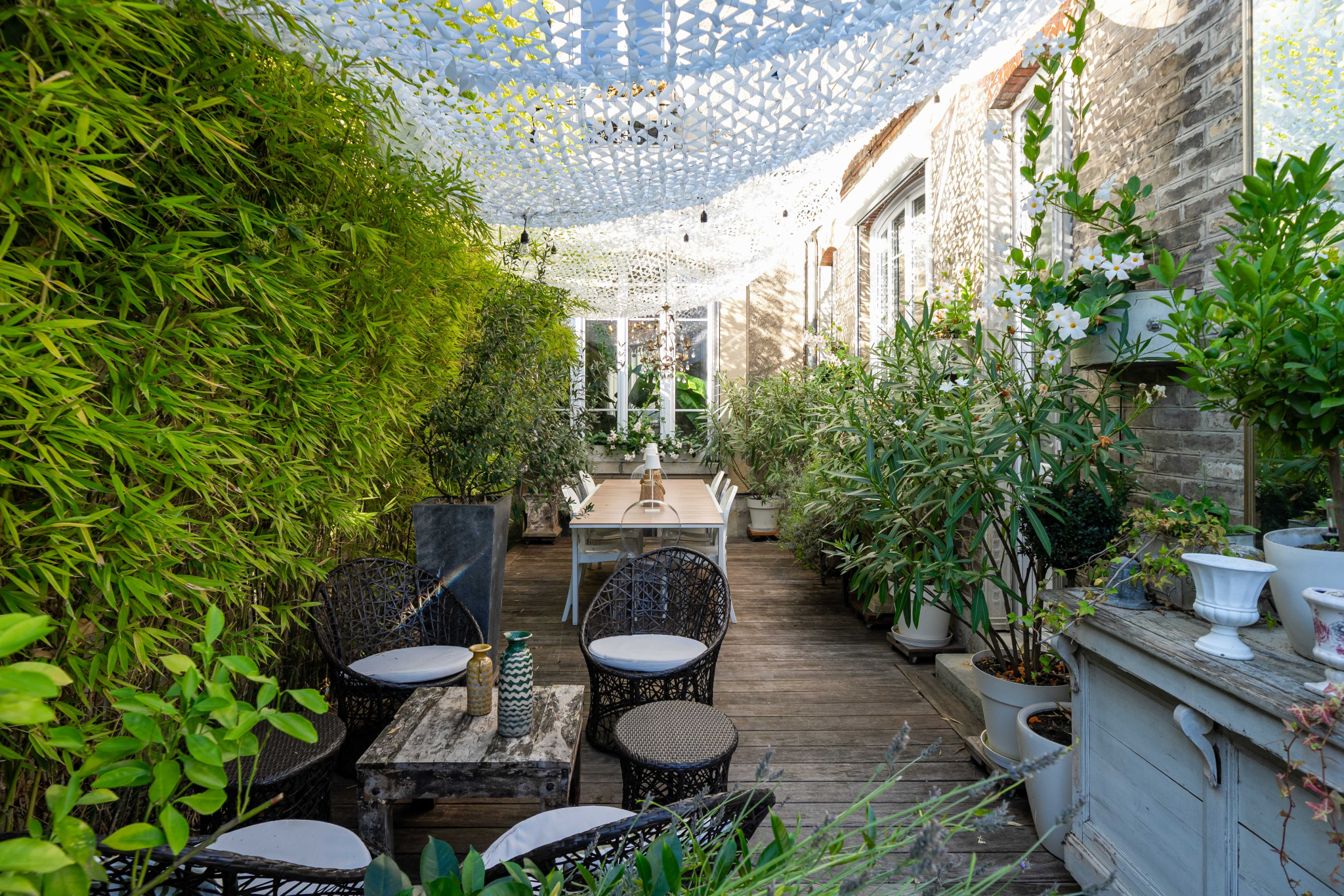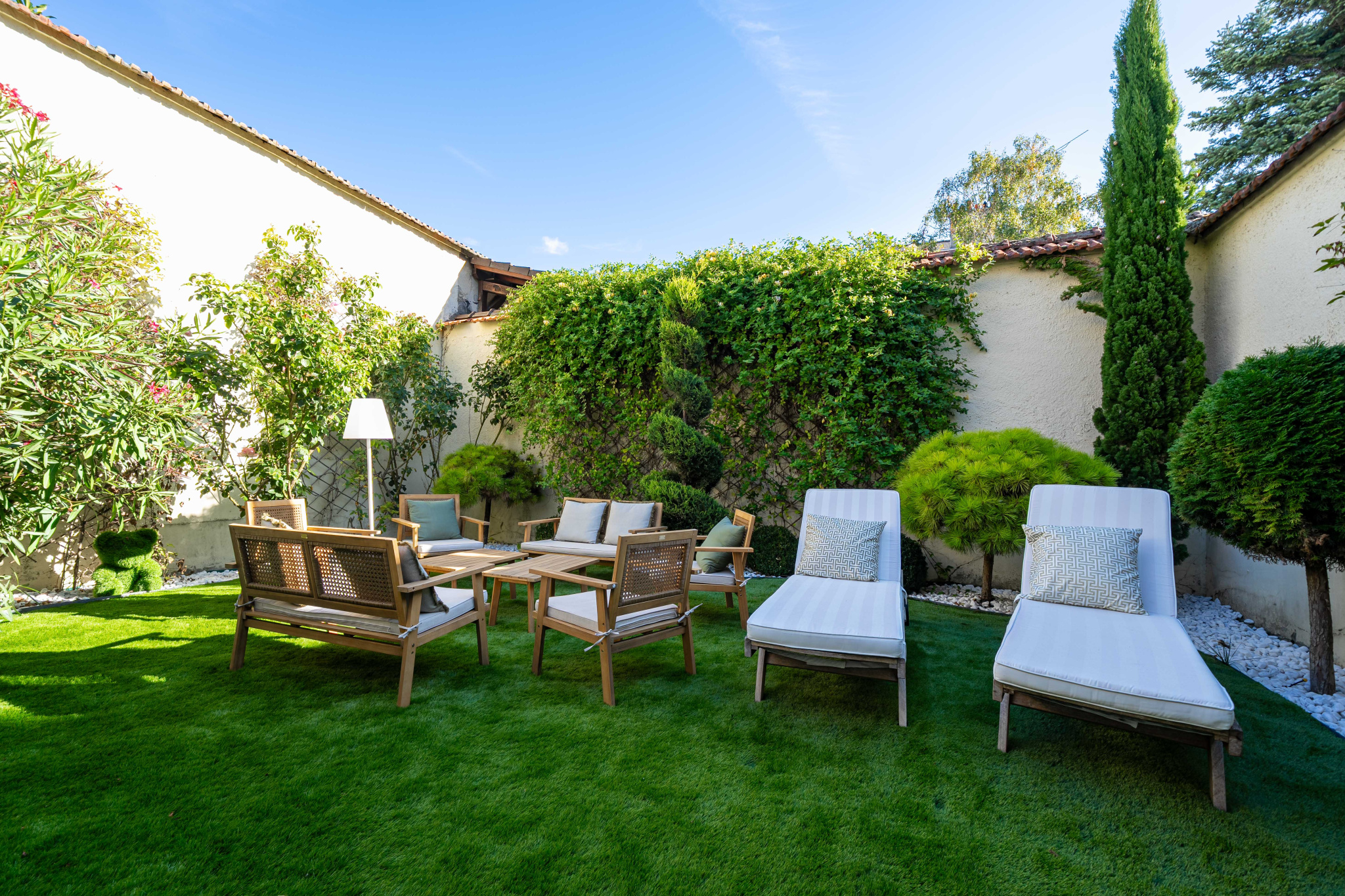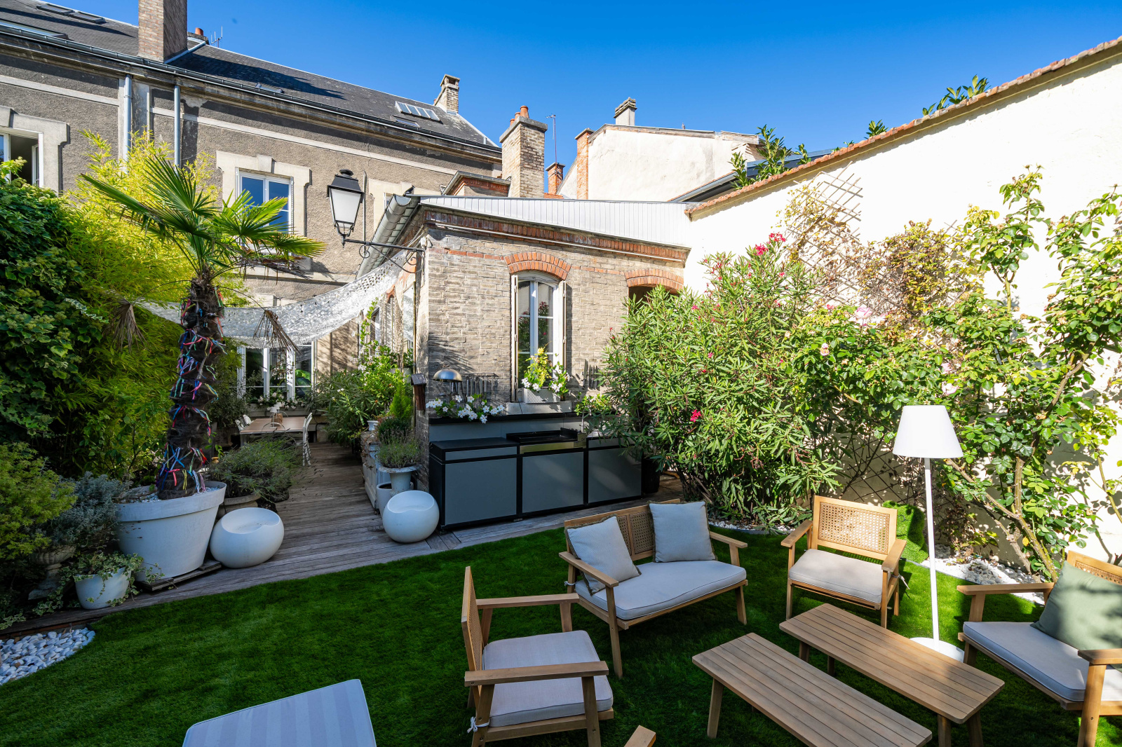 La maison s’ouvre sur un jardin clos et arboré, rare en centre-ville, véritable parenthèse de calme et de confidentialité.