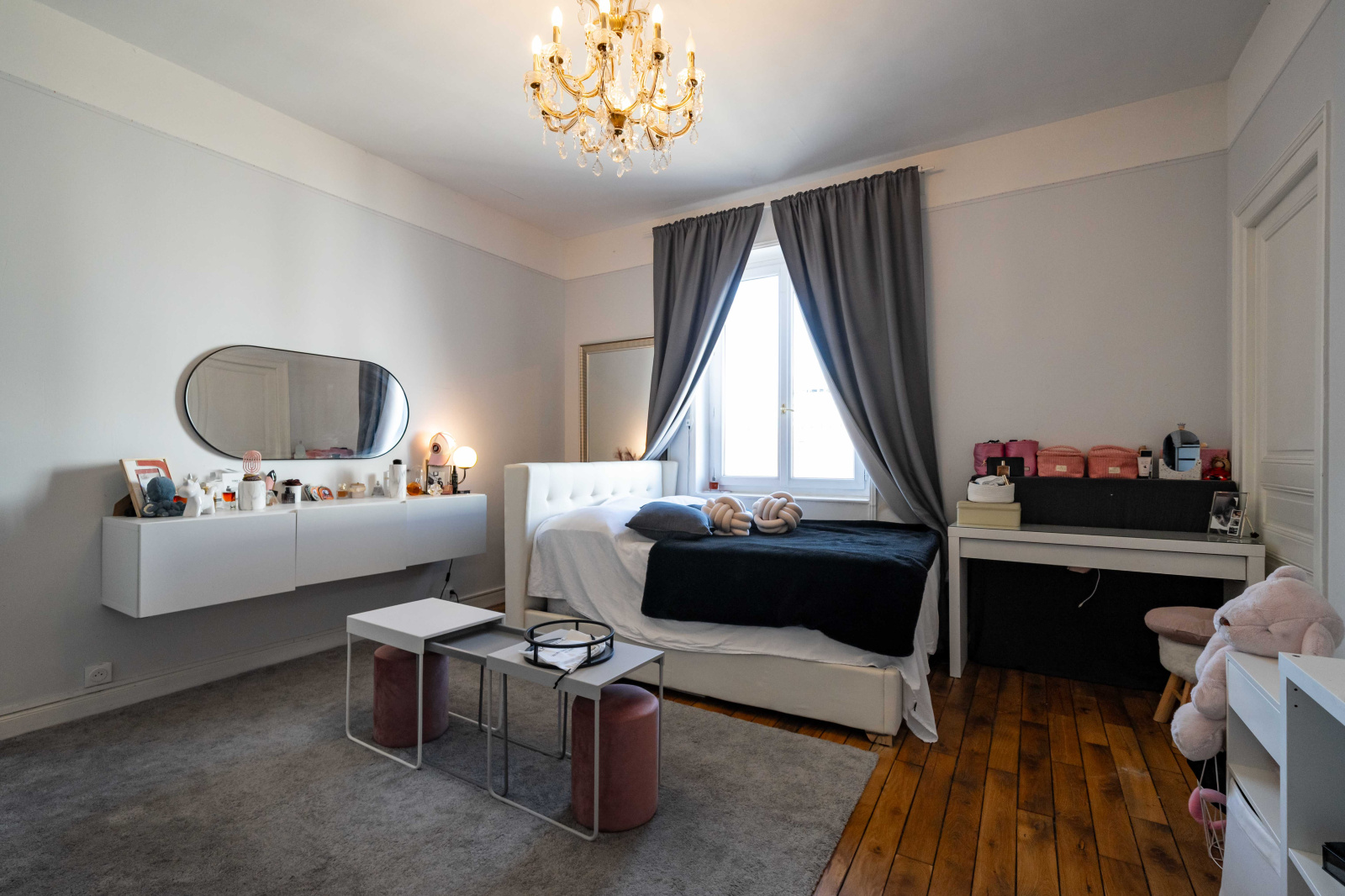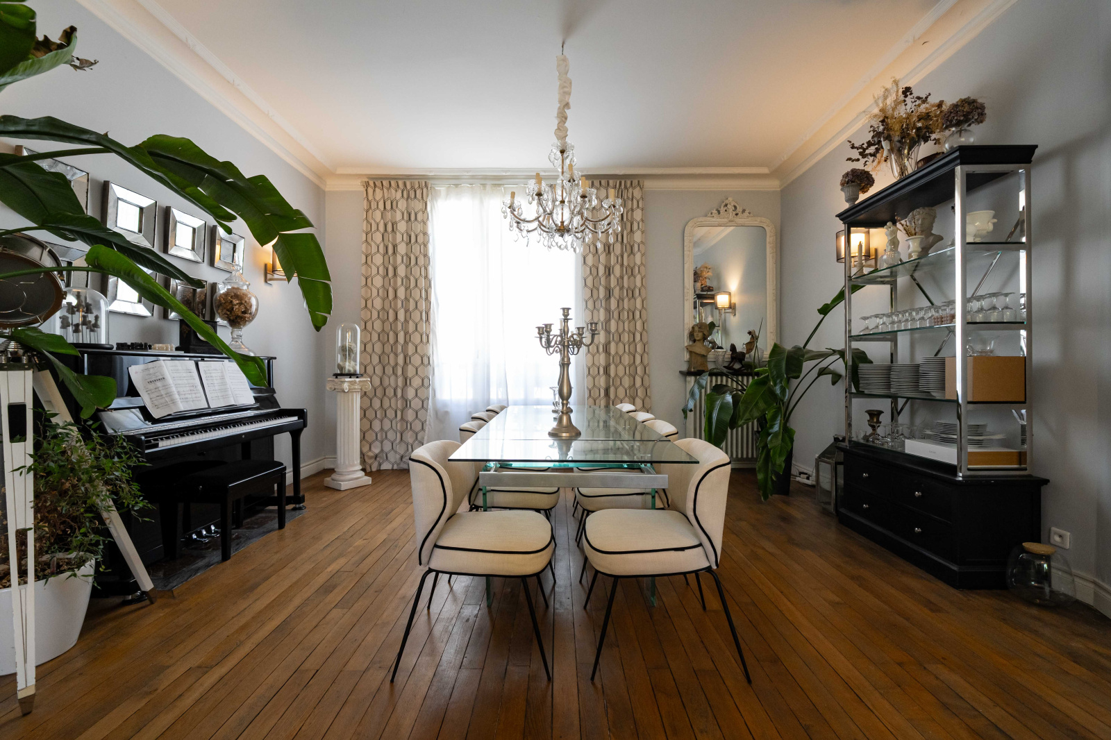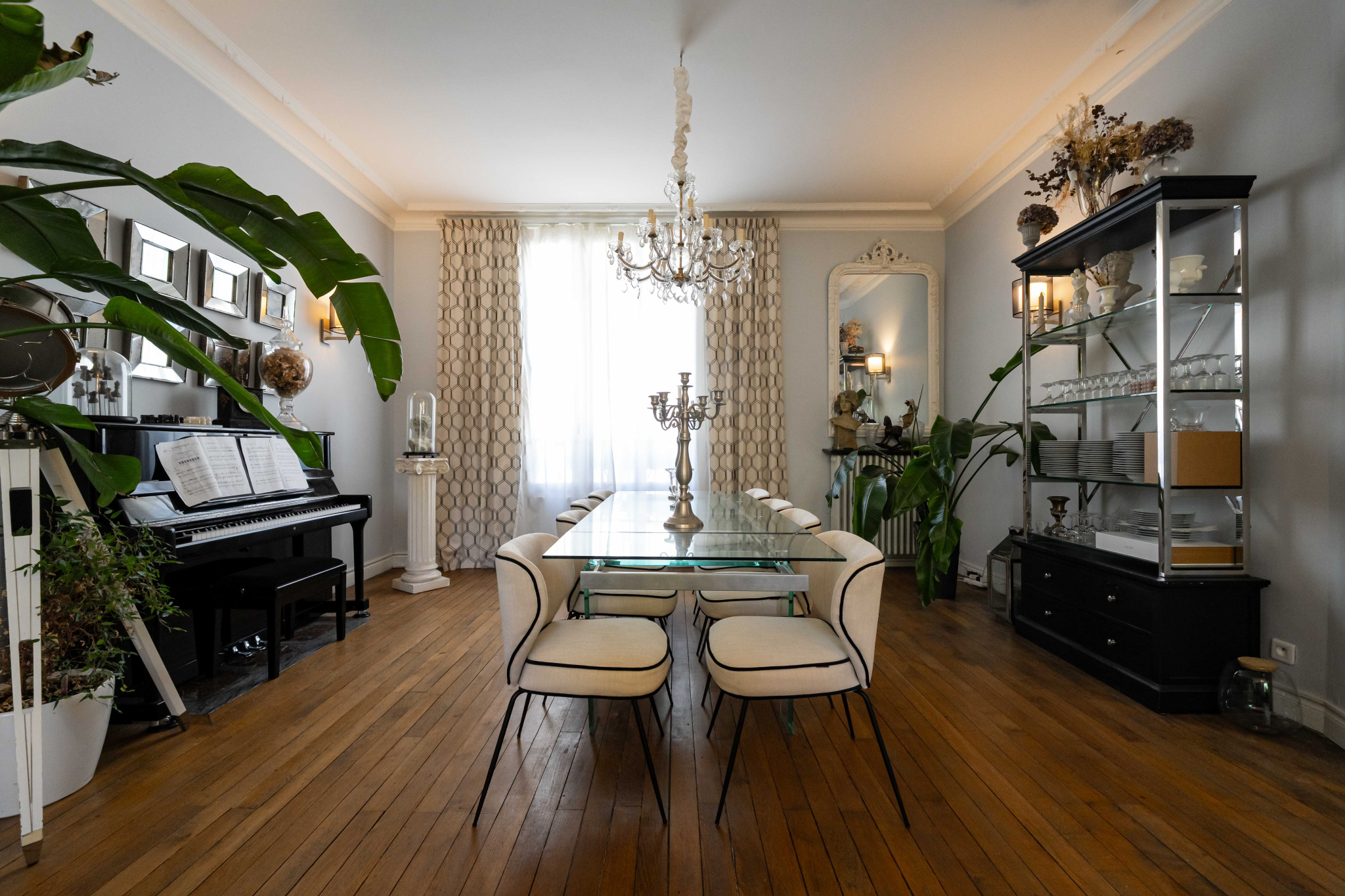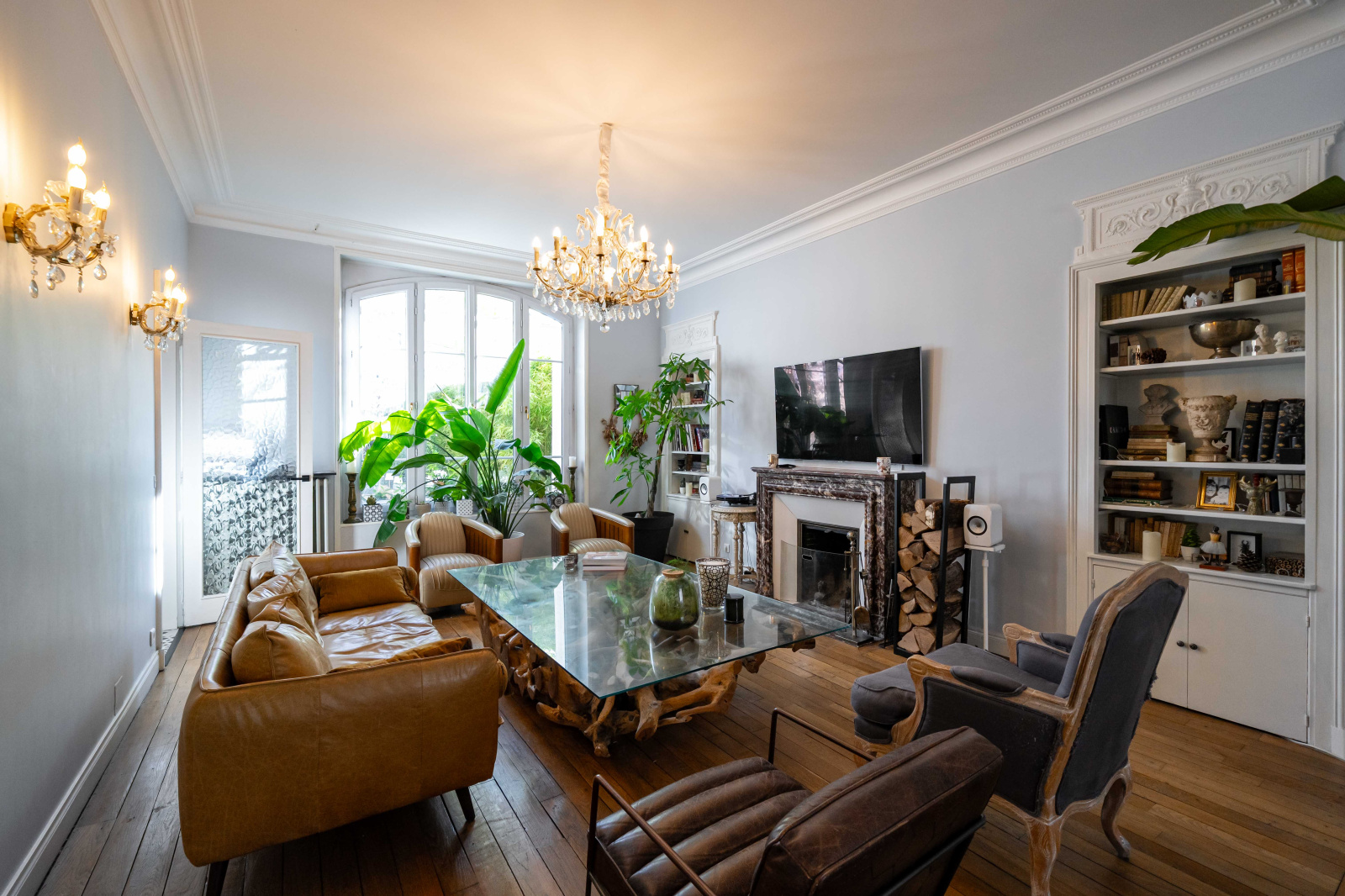 Hauteurs sous plafond, parquet en chêne massif, cheminées d’époque et lumière traversante signent une atmosphère intemporelle, subtilement réinterprétée par des prestations contemporaines.